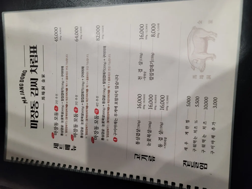 마장동 김씨 메뉴판